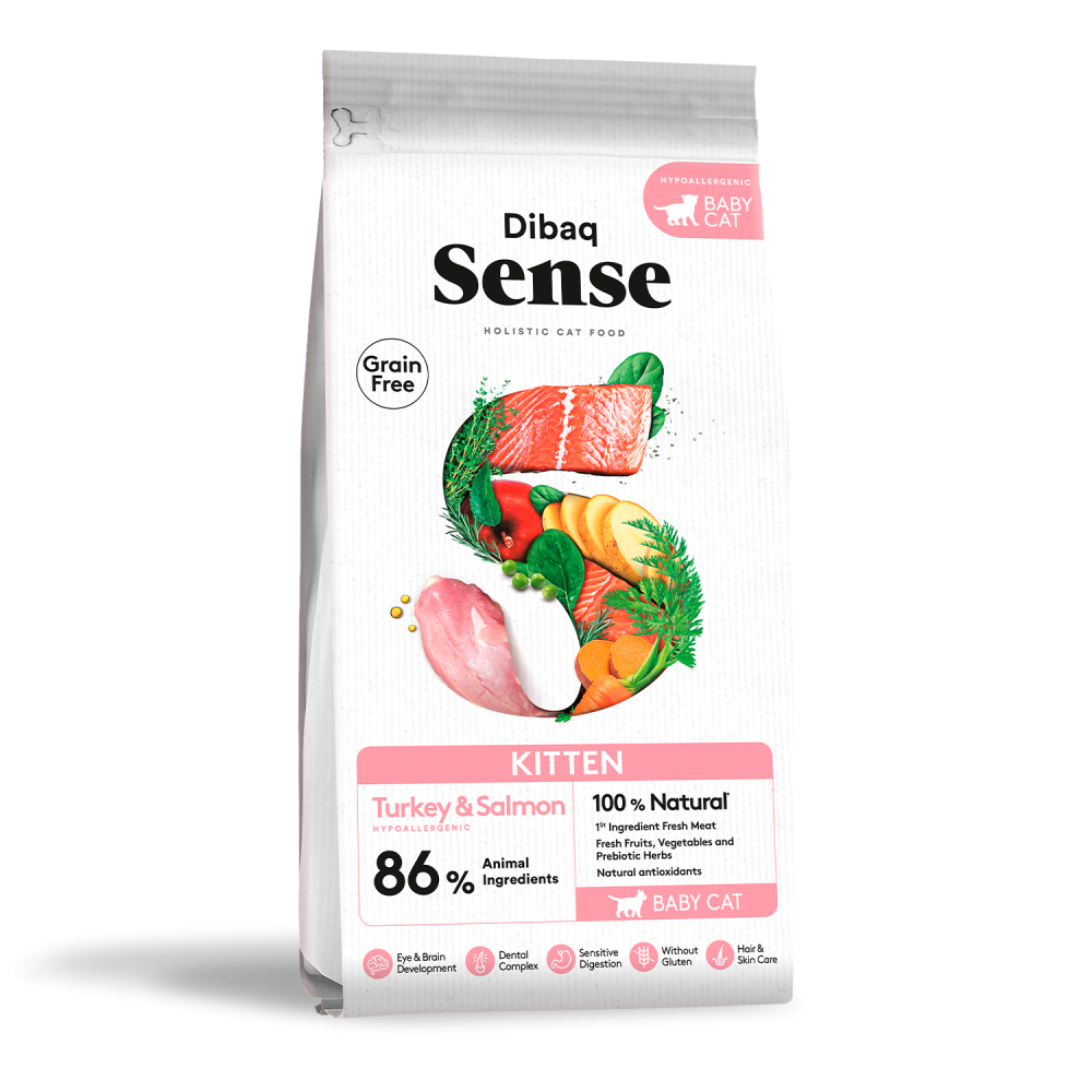 يعد ديباق سينس اكل جاف للقطط الصغيرة بالسالمون والديك الرومي خيار غذائي متكامل ومميز لقطتك، وذلك لأنه مصنوع من مكونات طبيعية 100%، حيث يحتوي على لحم الديك الرومي والسلمون كمكونات رئيسية بالإضافة إلى وجود مجموعة مغذية من الفواكه والخضروات والأعشاب، مما يؤكد لك أنه مصدر غذائي غني بالبروتينات والألياف الصحية لدعم نمو قطتك بشكل صحي، كما أنه لا يحتوي على أي نوع من الحبوب، وهذا ما يجعله مناسب للقطط التي تعاني من مشاكل في الجهاز الهضمي.