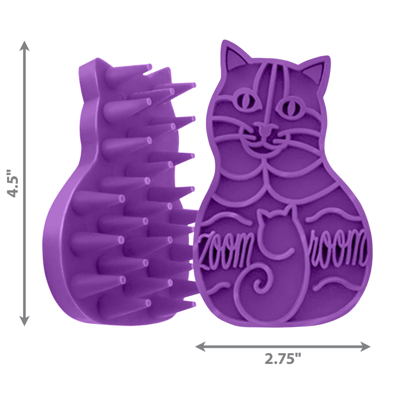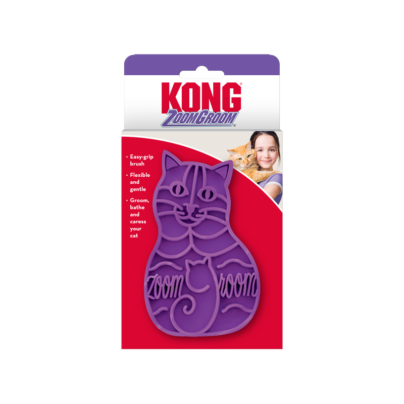 The KONG Cat ZoomGroom Brush is a versatile grooming tool designed to gently remove loose hair while providing a soothing massage for your cat. Its soft rubber bristles attract loose fur, helping to reduce hairball formation and promote healthy skin. Ideal for cats of all coat types, this brush makes grooming a pleasurable experience for both you and your feline friend